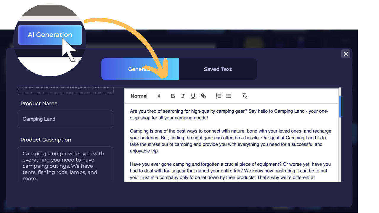 Enter a short description and let brand-new A.I. technology create a high-retention script for the video. Create different lengths of scripts and edit anything about it if needed.
