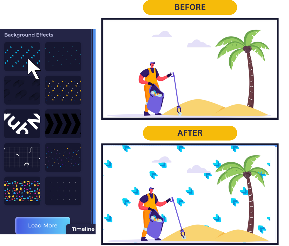Or, choose from a built-in library of animated backgrounds to bring your videos to the next level. Preview an animated background and insert it to take the video to the next animation level, just like big companies do.