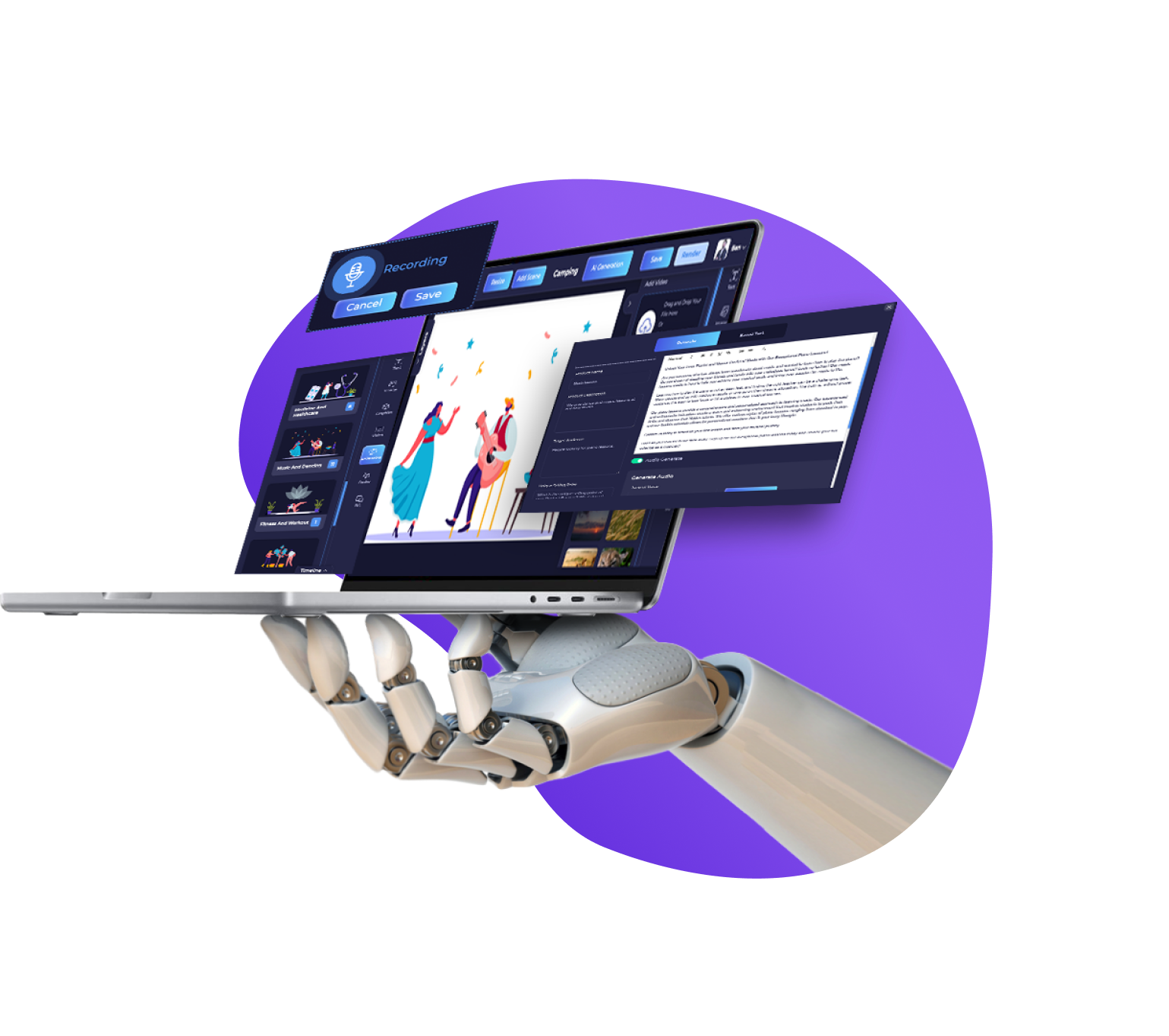 Leverage a huge animation scene library, drag-and-drop timeline editing, A.I. high-retention script writing, and more to make explainer animation videos that get results for any business.